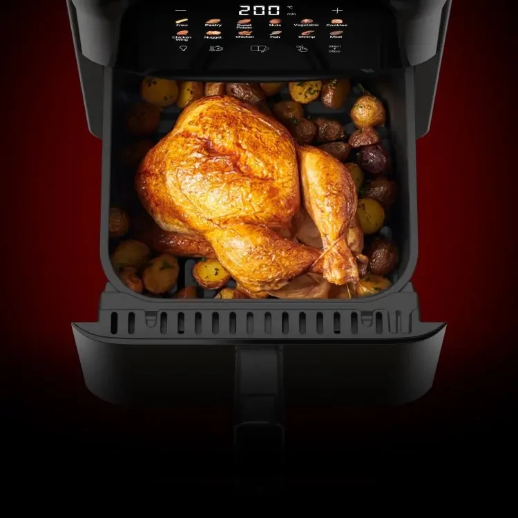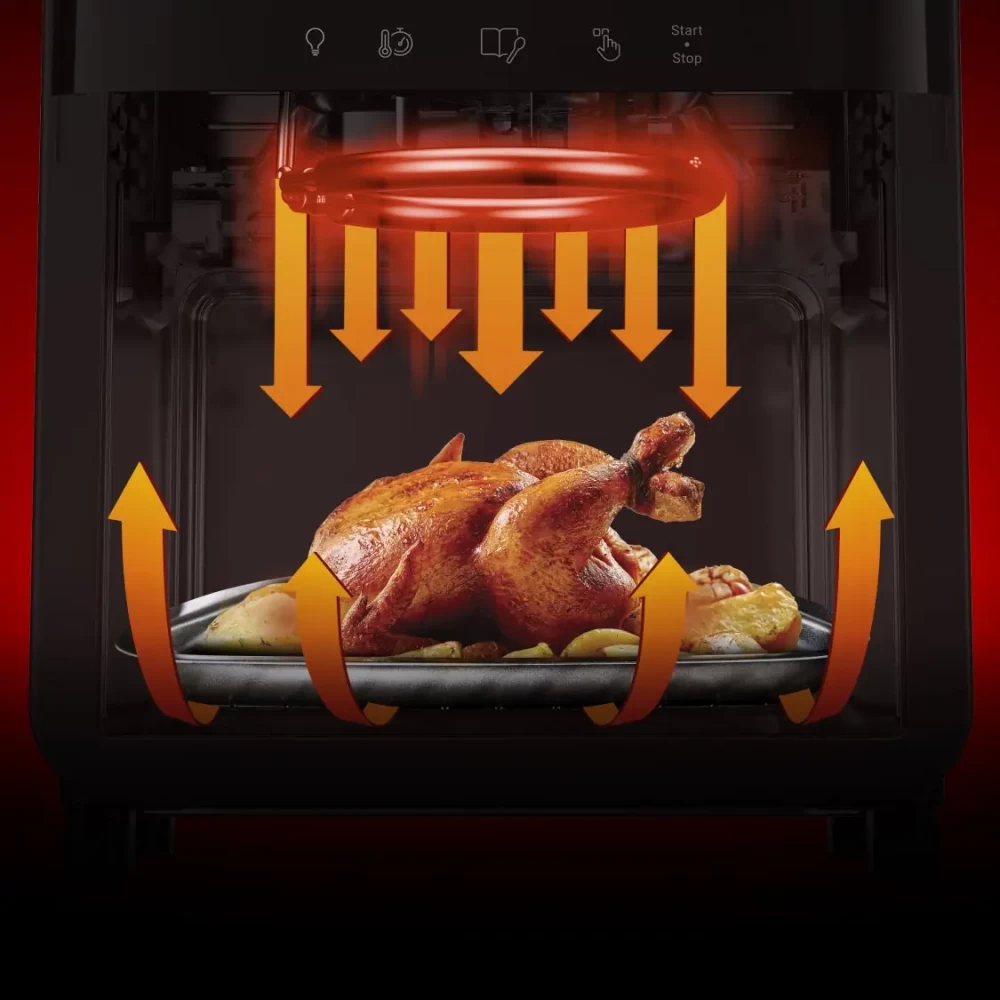 Интенсивная циркуляция горячего воздуха гарантирует аппетитную хрустящую корочку снаружи блюда, сохраняя его нежным и сочным внутри.