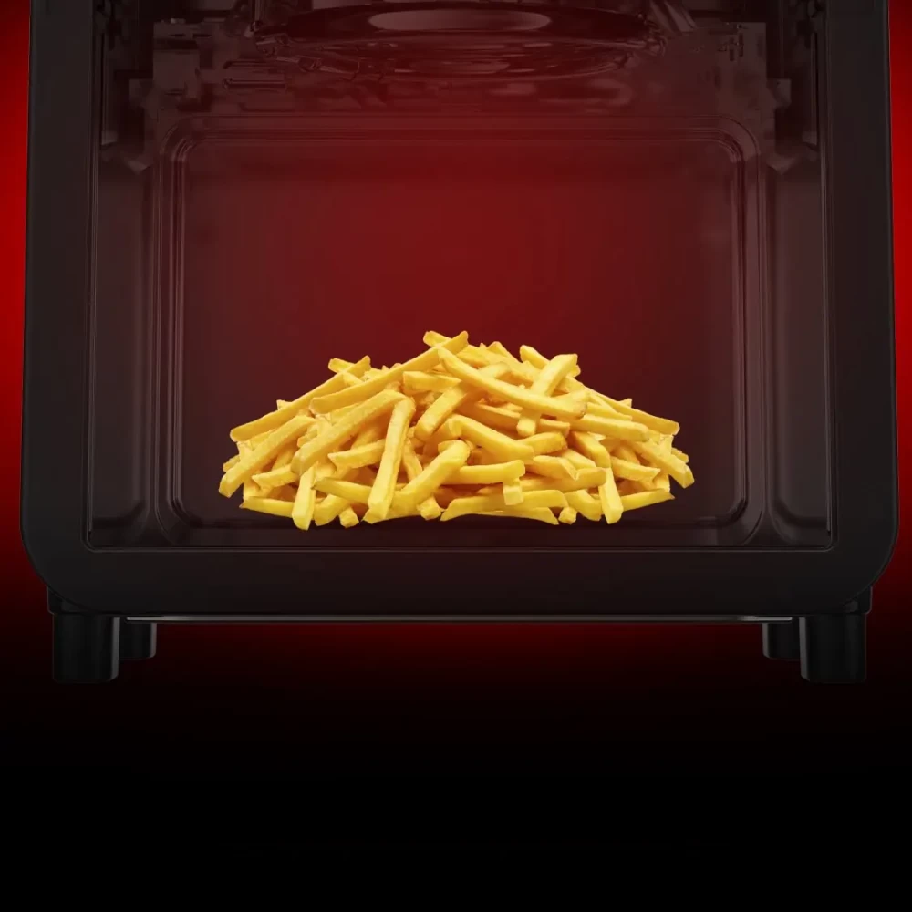 Контролируйте текстуру блюд, не прерывая процесс приготовления, с помощью прозрачного освещенного окошка. Никакого пережаривания и подгорания ингредиентов, только аппетитный результат с золотистой хрустящей корочкой!