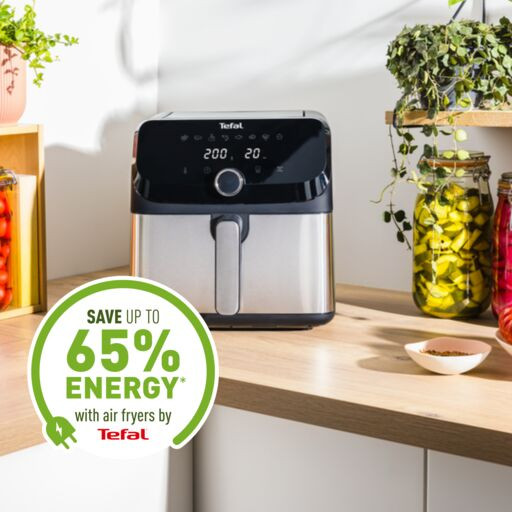 Аэрогриль Easy Fry Mega потребляет на 65% меньше энергии и готовит блюда на 37% быстрее обычной духовки.* *На основании тестов с замороженным картофелем фри, 2024 г