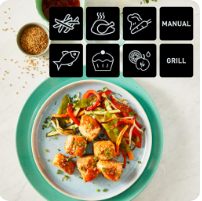 Наслаждайтесь полезными блюдами с хрустящей корочкой практически без масла – до 99% меньше добавленного жира.