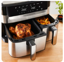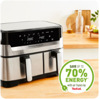 Аэрогриль Dual Easy Fry & Grill потребляет на 70% меньше энергии и готовит на 40% быстрее, чем обычная духовка.