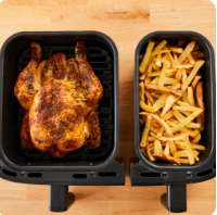 Приготовьте полноценный обед для всей семьи в аэрогриле Dual Easy Fry & Grill с двумя функциональными чашами для разных блюд. Используйте большую чашу объемных ингредиентов, а малую чашу для небольших блюд, или сразу обе емкости для огромных порций картофеля фри. Восемь автоматических программ позволяют готовить мясо с овощами на гриле и в аэрогриле, обжаривать рыбу, выпекать пиццу и десерты, а также делать полезные снеки без необходимости постоянного контроля над процессом приготовления. Начните готовить в аэрогриле Dual Easy Fry & Grill и наслаждайтесь вкусными блюдами с аппетитной хрустящей корочкой каждый день!