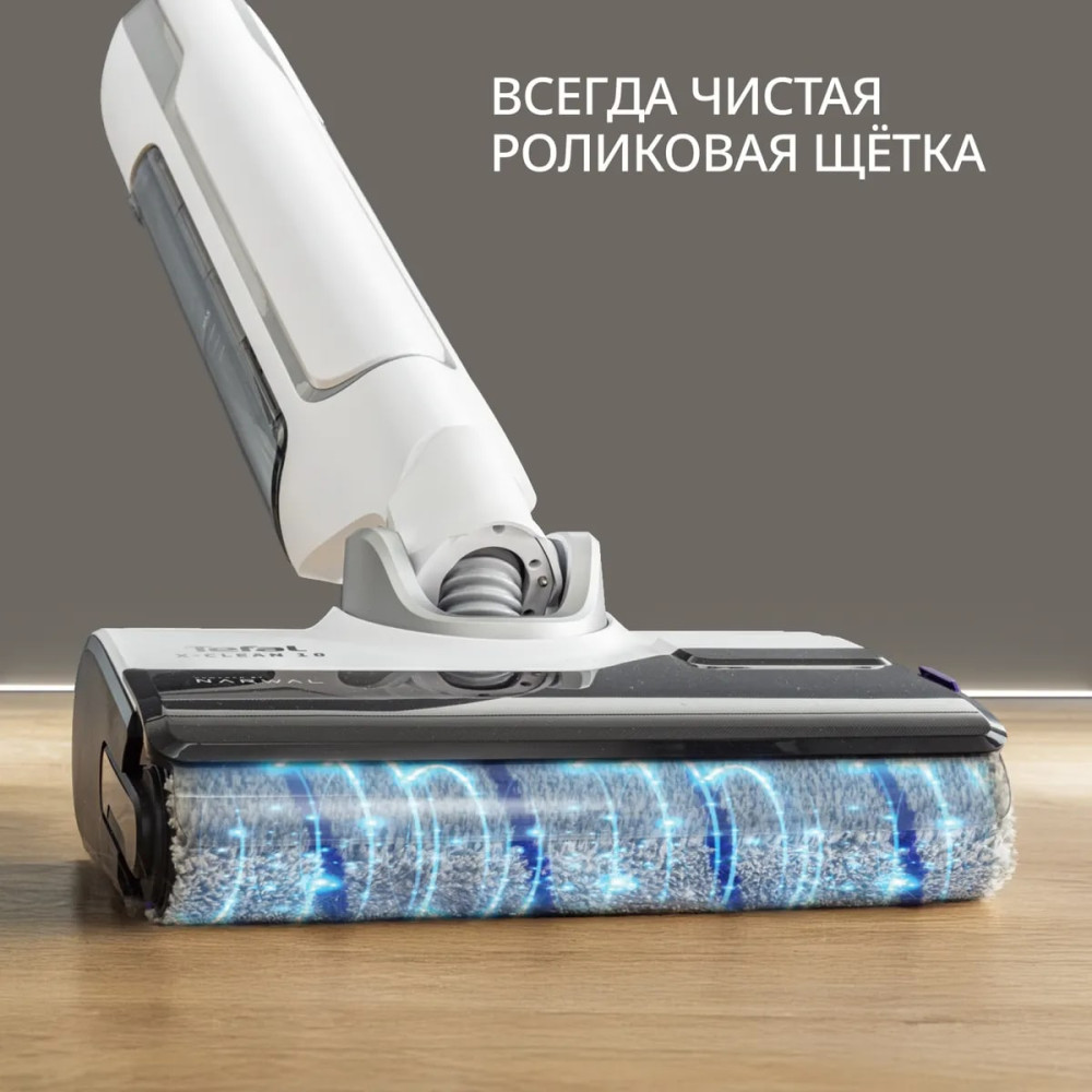 Благодаря специальному скребку и смачиванию водой роликовая щётка остаётся чистой на протяжении всей уборки, исключая возможность загрязнения пола и гарантируя идеальный результат.