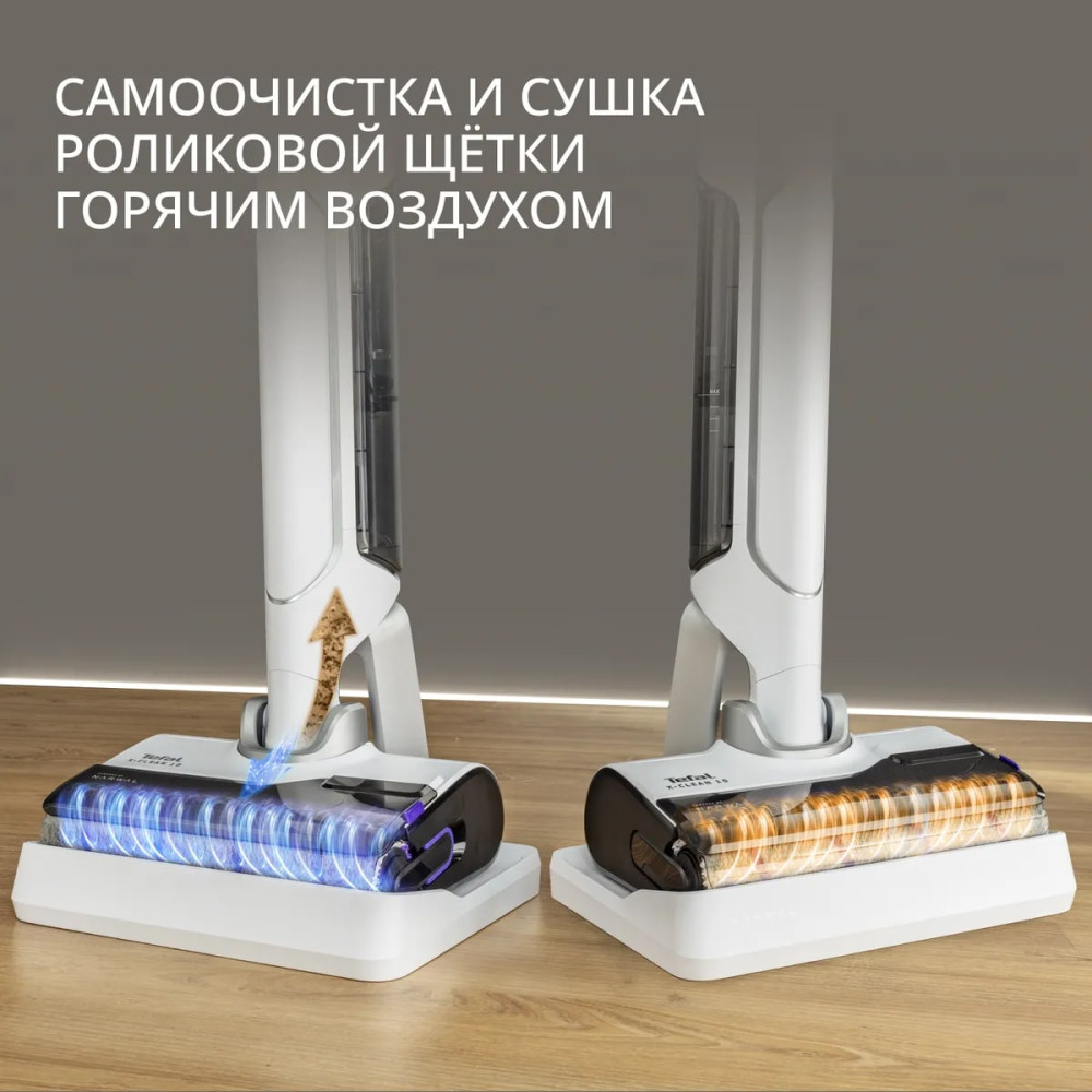 Вам не придётся контактировать с грязью благодаря функции самоочистки и сушки роликовой щётки горячим воздухом до 65°C. Останется только слить воду, и пылесос будет готов к следующей уборке.