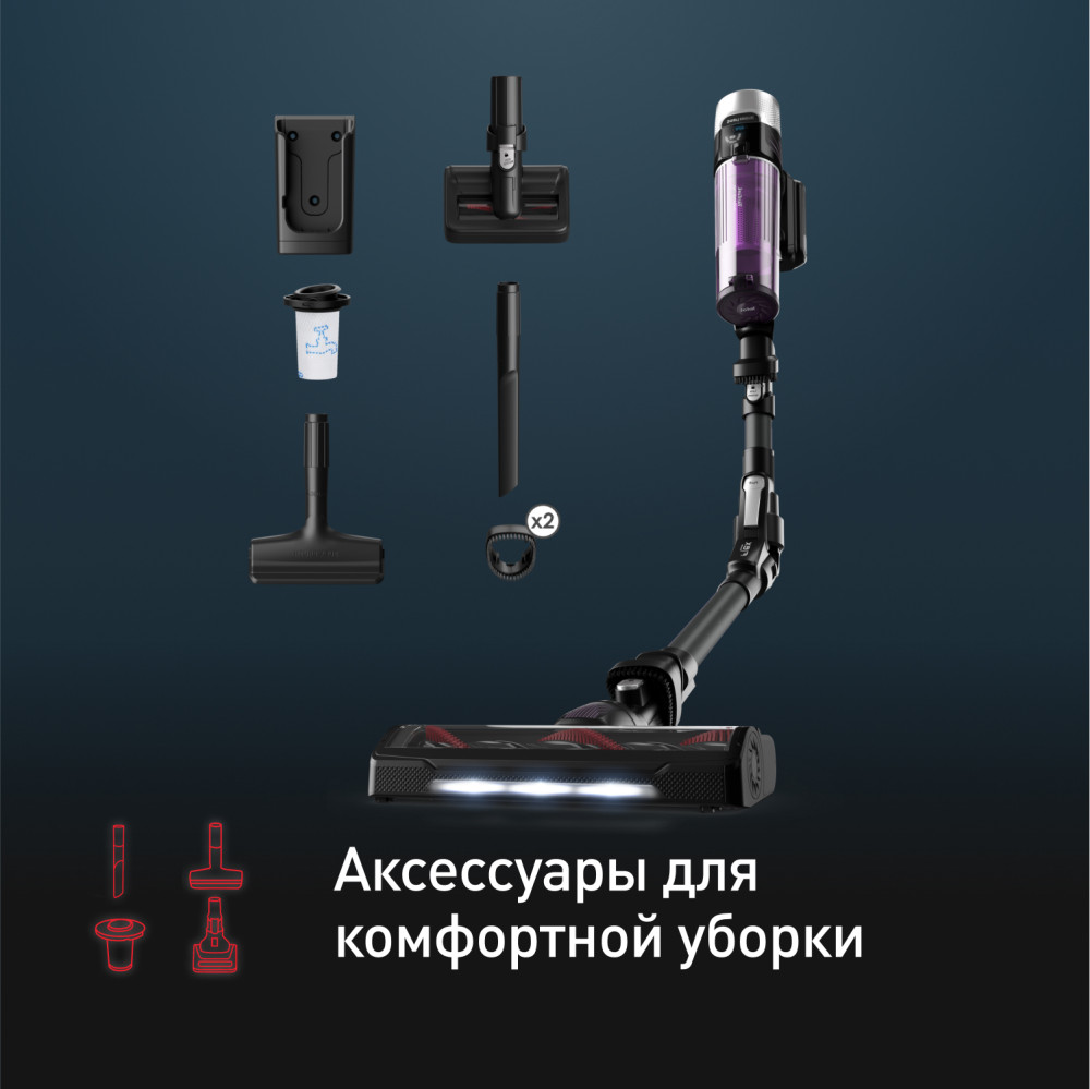 Как сделать уборку намного проще и приятнее? Ответит X-Force Flex 9.60. Этот вертикальный пылесос не рассчитан на компромиссы: он объединяет высокую мощность всасывания до 100 аэроватт* и вес всего 1.1 кг в ручном режиме, обеспечивая невероятное удобство и эффективность. Откройте инновационные технологии от Tefal: гибкий корпус Flex позволяет не наклоняясь пылесосить даже в самых труднодоступных местах, автоматическая регулировка мощности всасывания позволит не повреждать напольные покрытия, емкий аккумулятор обеспечит до 45 минут непрерывной работы, а SMART-дисплей управления отобразит всю необходимую информацию для точного контроля за процессом уборки. Он не только удобен в работе, но и сохраняет воздух чистым: эффективный фильтр предотвратит попадание 99.9% микрочастиц из пылесборника обратно в помещение, а широкий набор аксессуаров делает пылесос действительно универсальным помощником. *в режиме Boost *в режиме Boost **при использовании настройки Eco в ручном режиме