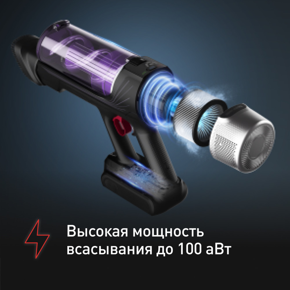 Мощность всасывания 100 аэроватт эффективно справляется с пылью и грязью