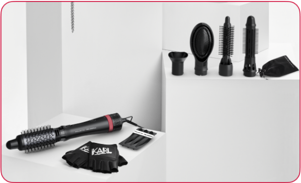Вращающийся на 360° шнур обеспечивает свободу движений, лёгкий и эргономичный корпус делает процесс укладки удобным и комфортным, а чехол позволяет аккуратно хранить прибор.