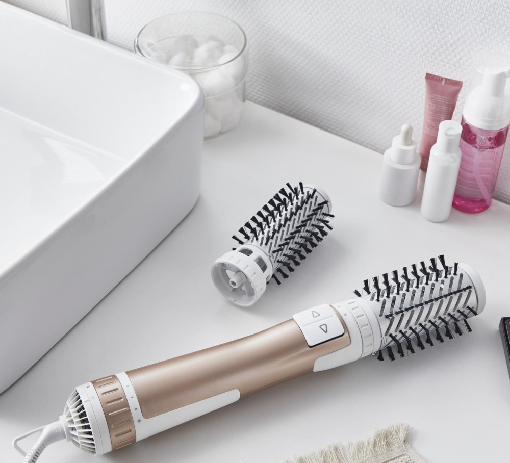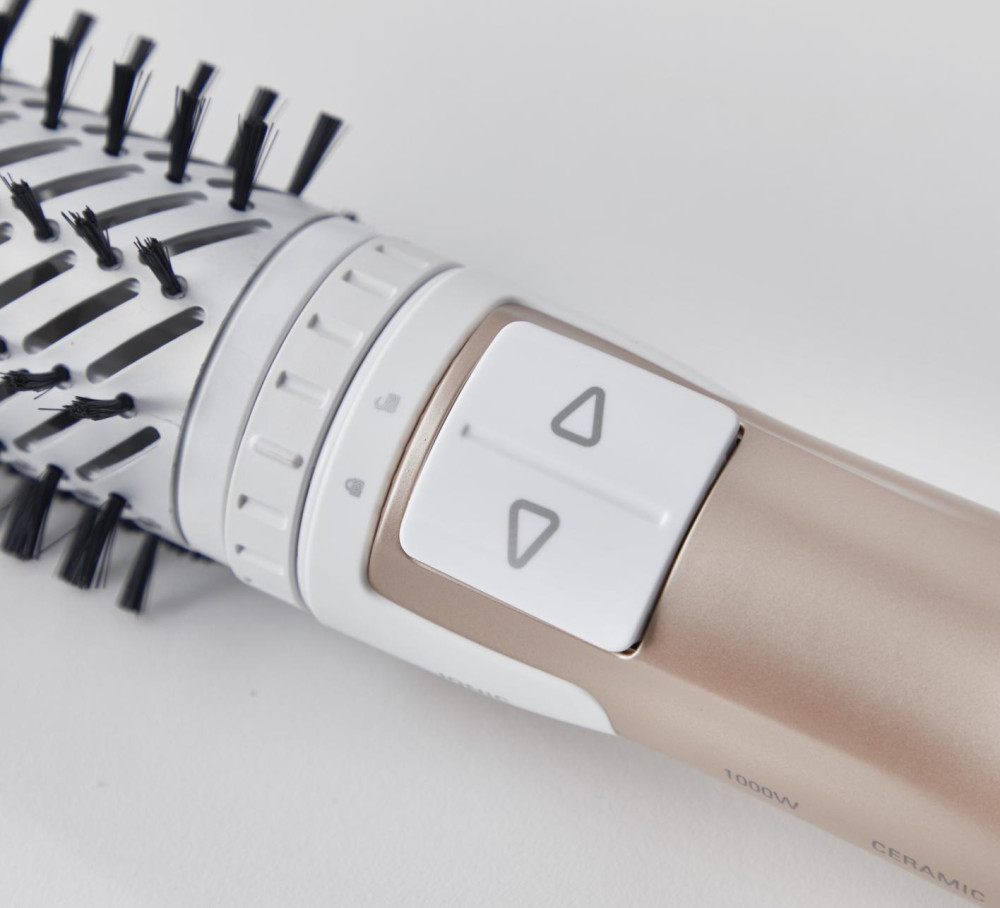 Автоматическая вращающаяся щётка повторяет движения стилиста при профессиональной укладке и одновременно высушивает волосы.