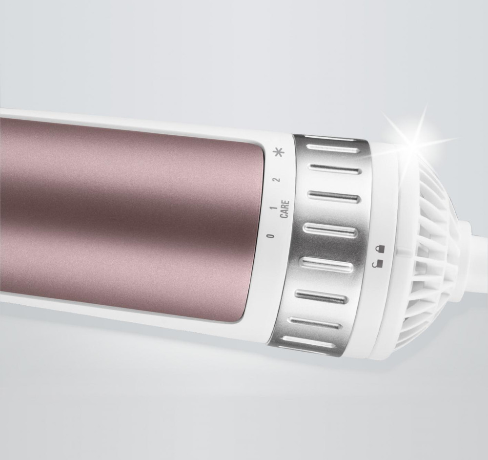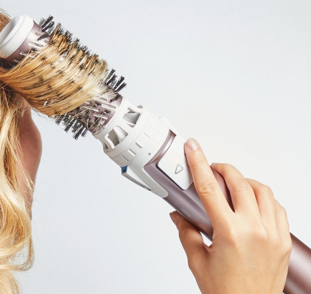Автоматическая вращающаяся щётка повторяет движения стилиста при профессиональной укладке и одновременно высушивает волосы.