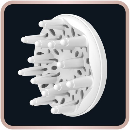 Насадка-диффузор приподнимает волосы у корней, придавая им потрясающий объем, и помогает сформировать упругие кудри.