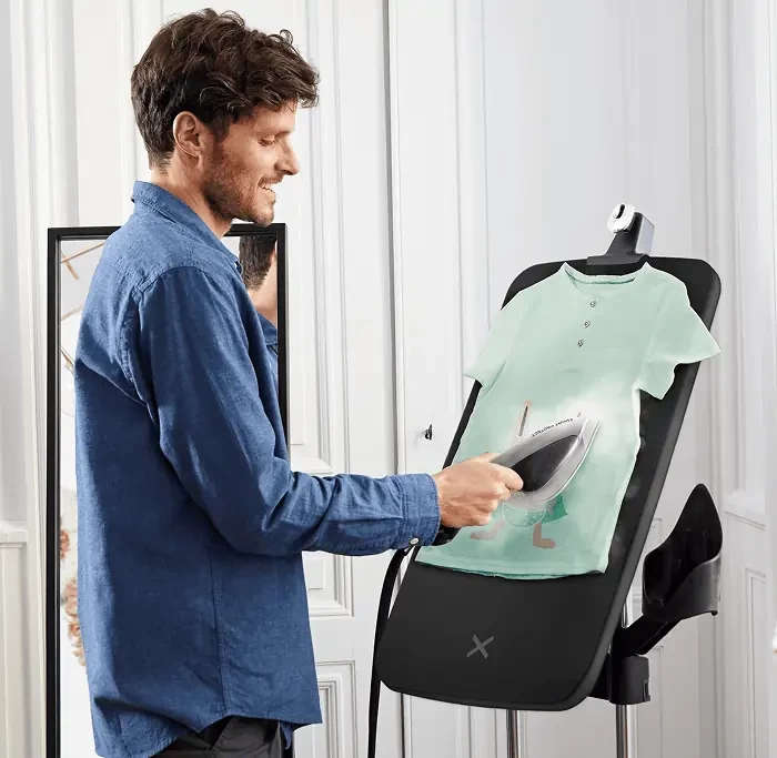 Гладильная система оснащена уникальной доской с регулируемым углом наклона для длительных и коротких сессий глажения и отпаривания с лёгкостью и комфортом.