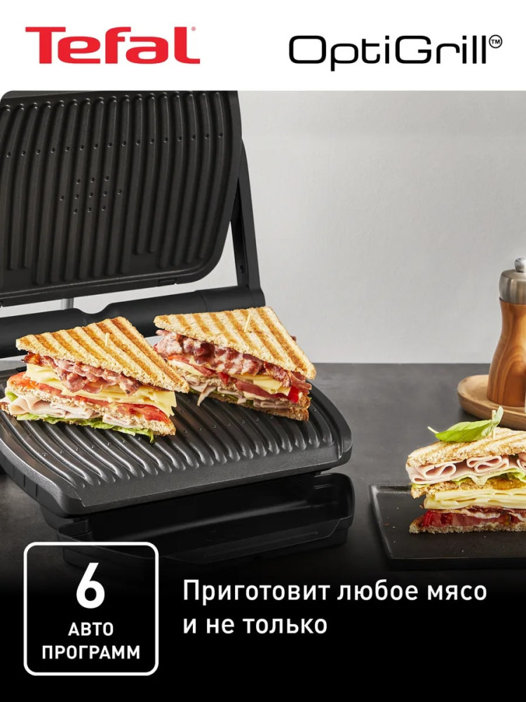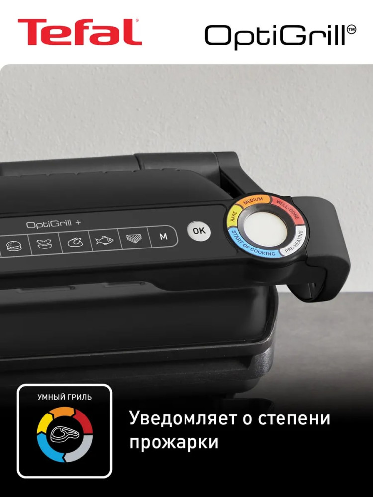 Сочный стейк любой прожарки? Легко! Умный электрогриль Tefal Optigrill+ GC714834 c насадкой для запекания в комплекте сделает всё сам и, кроме стейка, приготовит много других блюд с помощью одной из шести автоматических программ. Всё под контролем — запатентованный круговой дисплей отражает каждый этап приготовления. Как только степень прожарки изменится, он сразу же сообщит об этом с помощью звукового сигнала и цветового индикатора: жёлтый цвет — с кровью, оранжевый — средней прожарки, красный — полной. Датчик приготовления обеспечит контроль за идеальным приготовлением стейка любой толщины и степени прожарки — как ты любишь. Готовьте мясо, птицу, рыбу или бургеры и даже овощи и фрукты — полная свобода кулинарных экспериментов. Благодаря фирменному антипригарному покрытию Tefal очистить гриль очень просто. Съёмные панели и лоток можно мыть в посудомоечной машине, а иногда просто достаточно протереть поверхность бумажным полотенцем.