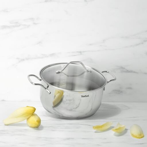 Элегантная стеклянная крышка позволяет вам удобно наблюдать за процессом приготовления, не нарушая его, а встроенный паровыпуск сохраняет оптимальное давление внутри посуды, чтобы каждое блюдо получилось аппетитным и сочным.