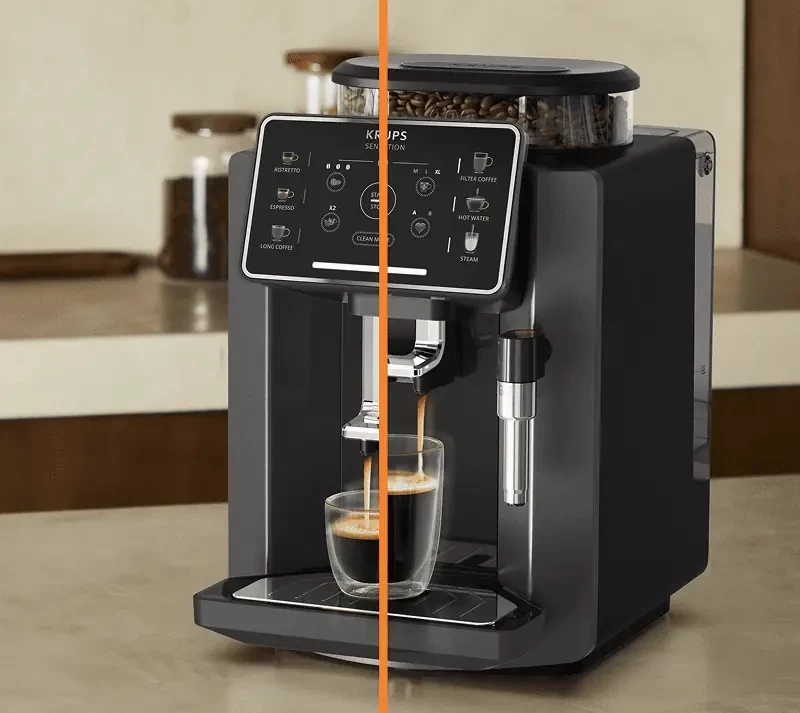Автоматическая кофемашина KRUPS Sensation C50 EA910810 — это идеальное решение для тех, кто ценит безупречный вкус и удобство в процессе приготовления кофе. С мощностью 15 бар, она обеспечивает полную экстракцию вкуса, позволяя вам наслаждаться настоящим эспрессо с максимальной насыщенностью. Эта модель оснащена 5 установленными рецептами, включая ристретто, эспрессо, лунго, фильтр-кофе и горячую воду, чтобы вы могли быстро приготовить любимые напитки одним нажатием кнопки. Ручной капучинатор гарантирует создание идеальной молочной пены для ваших капучино или латте, добавляя изысканности каждому утреннему напитку. Компактные размеры и стильный современный дизайн позволят кофемашине гармонично вписаться в любую кухню. 1,7-литровый резервуар для воды и контейнер для 260 г зерен обеспечивают удобство длительного использования без частых дозаправок. Встроенная система автоматической очистки с индикацией и простота обслуживания с использованием специальной таблетки обеспечат вам минимум забот о техническом обслуживании устройства. Кофемашина произведена во Франции и сочетает в себе высококлассные технологии, включая эксклюзивную кофемолку с металлическими жерновами и идеальную трамбовку для равномерного помола. С KRUPS Sensation ваш каждый день будет начинаться с идеального кофе.