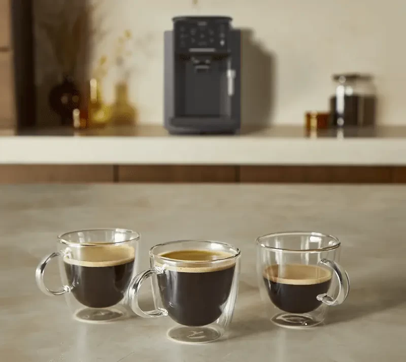 Кофемашина позволяет легко приготовить две порции кофе за один раз.