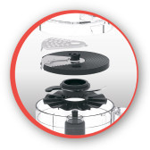 Благодаря продуманному дизайну все насадки и аксессуары удобно хранить в чаше кухонного комбайна.
