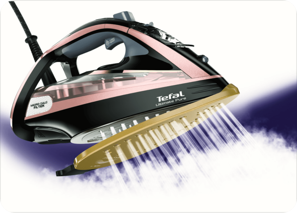 Паровой утюг Ultimate Pure от Tefal сочетает мощный пар и эксклюзивную систему очистки от накипи для наилучшего результата и наиболее продолжительной жизни прибора. Инновационный фильтр от накипи Micro-calc удерживает частицы накипи и препятствует образованию пятен на ткани. Регулируемая подача пара до 60 г/мин и мощный паровой удар 260 г/мин помогут разгладить складки даже на самой плотной ткани.