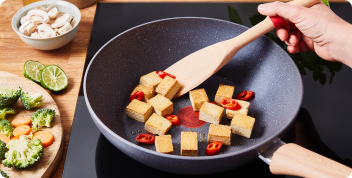 Сковороды, усиленные минералами, имеют прочное и долговечное антипригарное покрытие, которое легко мыть.